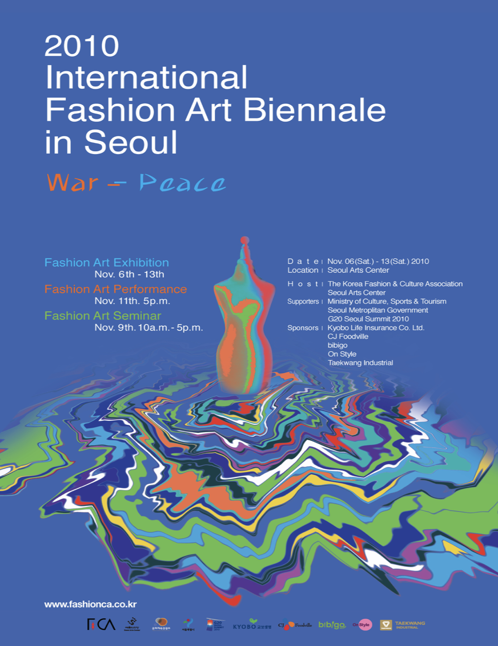 취지: 1. (사)한국패션문화협회는 2010년 6.25전쟁 60주년과 G20 정상회의 개최라는 역사적인 행사의 제고를 위해 패션 비엔날레의 이름으로 세계의 패션 아트 작가들을 한 자리에 초대한다.